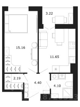 Площадь квартиры по документам 37,6 кв.м + лоджия 3,3 кв.м