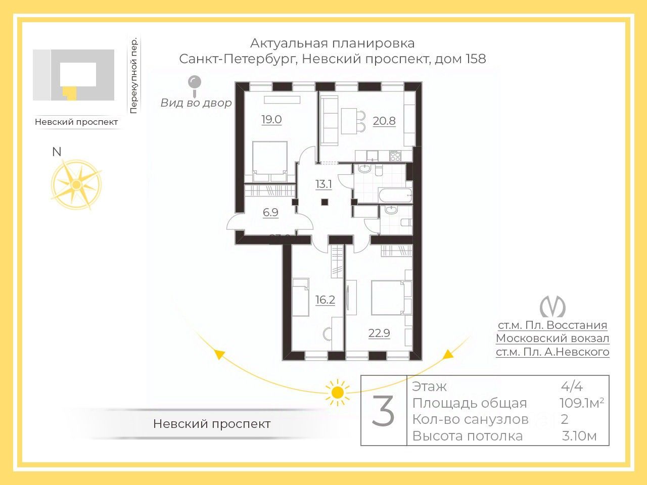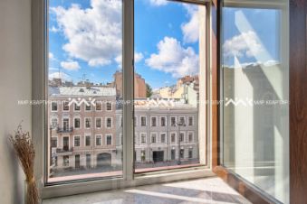 Окна: 3 окна на Невский проспект и 4 окна в зеленый двор.