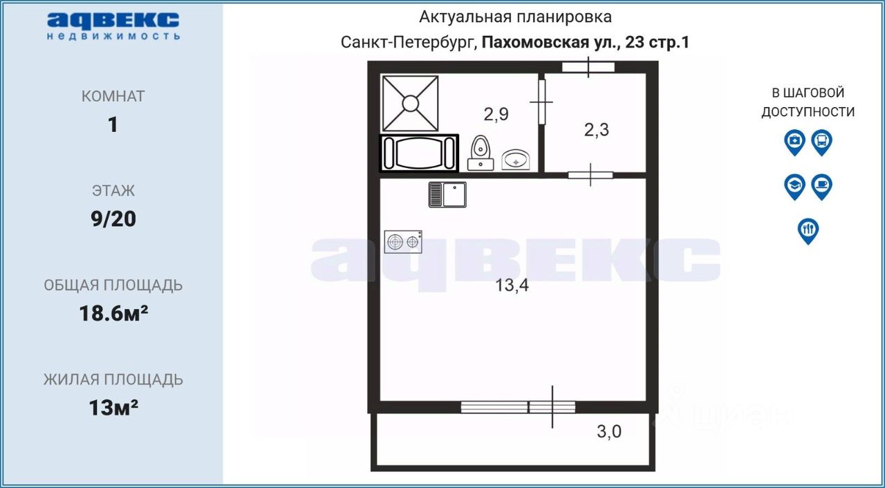 Продам уютную студию на 9 этаже в ЖК "Цветной город" от известного застройщика "ЛСР"!