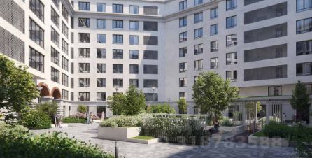 Закрытый зелёный двор с озеленением, уличными шезлонгами, амфитеатром из дерева, детской площадкой из экологичных материалов, зоной Wi-Fi и обогревателями.