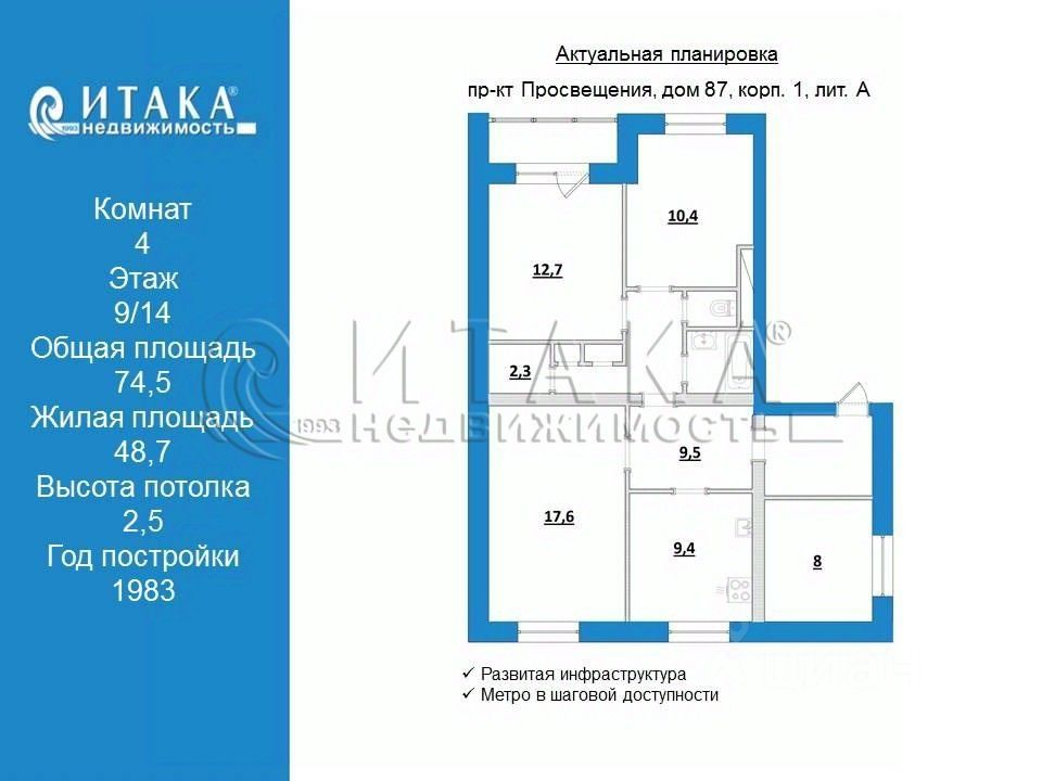 74,5 м²