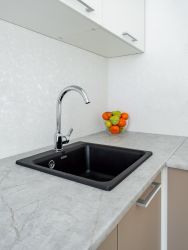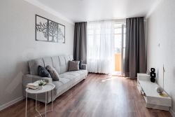 Квартира укомплектована техникой (посудомоечная машина, духовой шкаф, варочная панель, холодильник) и мебелью.