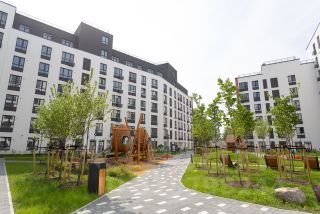 - Единый стилобат жилого комплекса объединяет в себе коммерческую инфраструктуру и отделяет внутренний двор от внешнего мира, создавая приватную территорию.