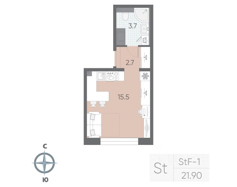 Продаётся студия в ЖК "Большая Охта" на 9 этаже. Общая площадь составляет 21.90 кв. м. Квартира с white box отделкой. Жилой комплекс "Большая Охта" располагается по адресу Санкт-Петербург, Красногвардейский.