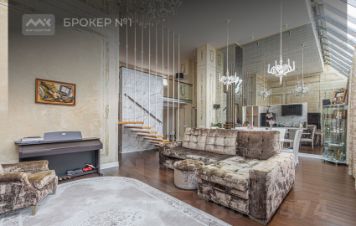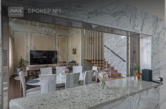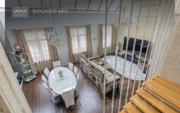 На первом этаже расположена кухня 30 м2., которую украшает функциональный остров. С чашечкой кофе вы можете выйти на террасу и насладиться видом ансамбля Смольного собора. Просторную гостиную 44 м2 украшают множественные окна под потолком, открыв жалюзи через них проникает яркий солнечный свет. Высота потолков достигает 5-ти метров.