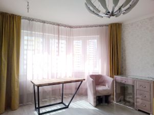 Ремонт выполнен из качественных строительных и отделочных материалов, что позволяет сразу въехать в квартиру: итальянские обои, на полу плитка, в комнате ламинат, на кухне и в ванной комнате установлена натуральная деревянная мебель.