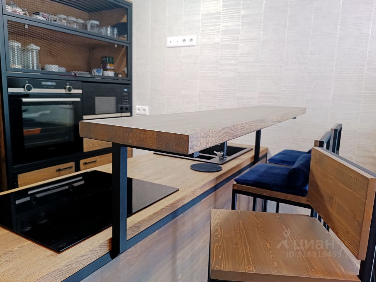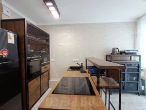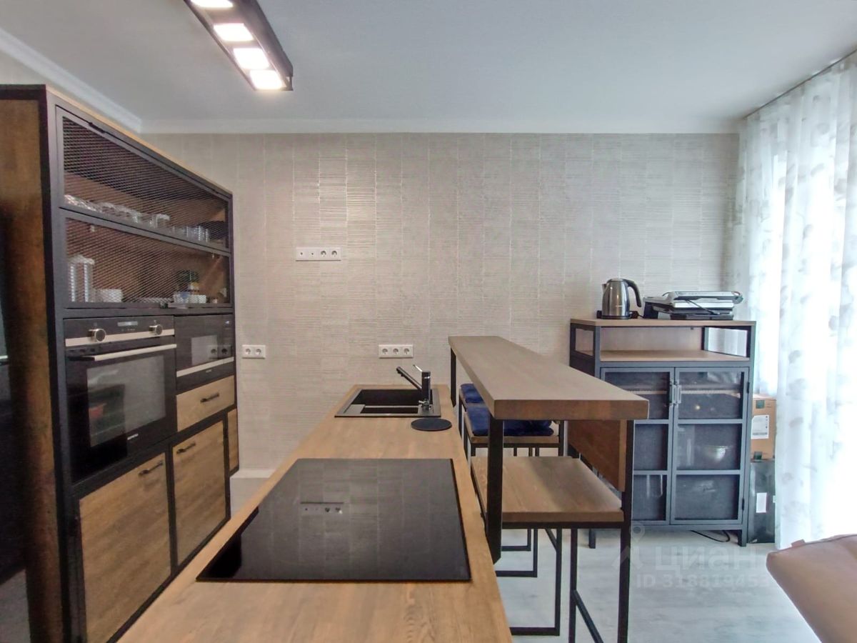 Квартира полностью меблирована и оборудована техникой: микроволновая печь и духовой шкаф немецкой фирмы Siemens, индукционная плита, много мест хранения, в комнате комфортный раскладывающийся диван, шкаф, туалетный столик и стол для работы.