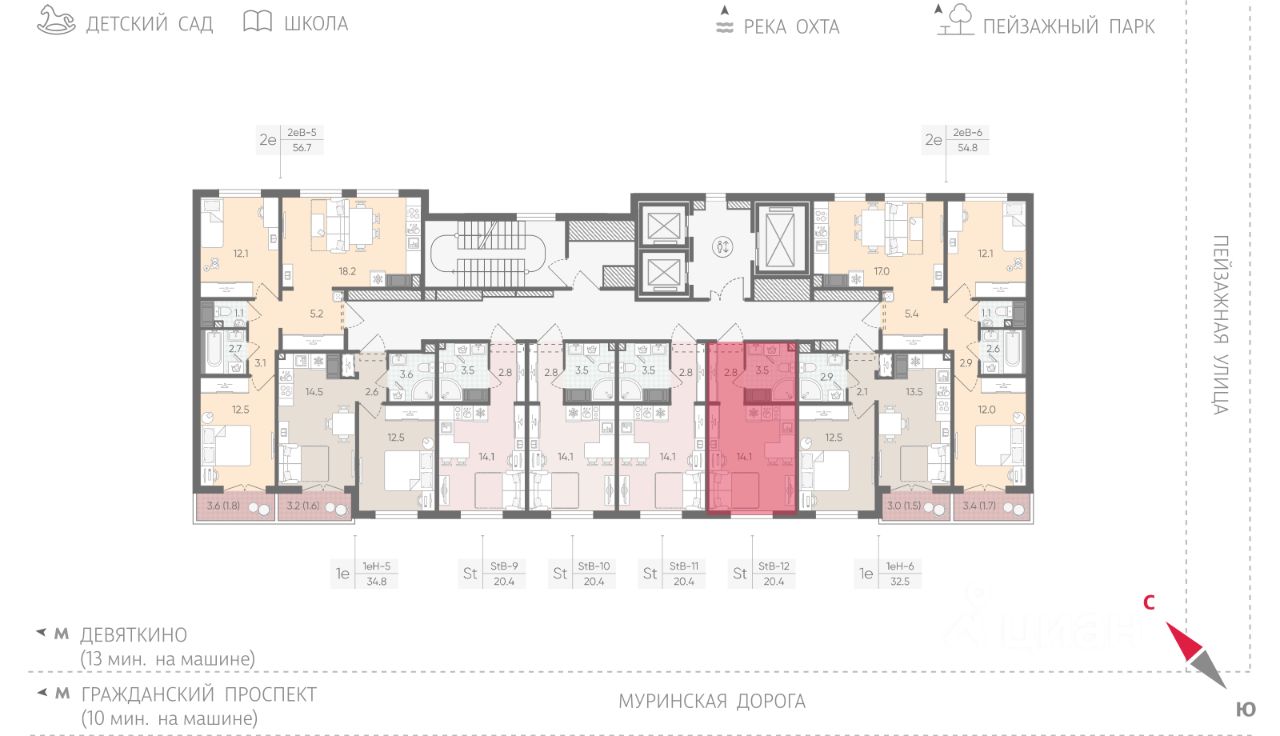 • 20 минут на авто до станций "Гражданский проспект" и "Академическая";
