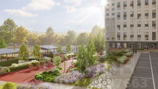 Вдоль леса и рядом с рекой Охта. К 2026 году на берегах реки Охты будет создан Пейзажный парк с летними экотропами и зимними горками для тюбингов, скейт-парком и летним кинотеатром.