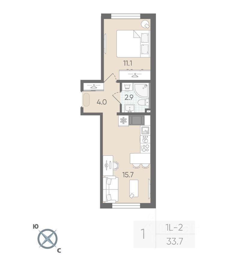 Продается 1-комнатная квартира в ЖК "Пейзажный квартал" на 3 этаже. Общая площадь составляет 33.70 кв. м. Квартира с чистовой отделкой. Жилой комплекс "Пейзажный квартал" располагается по адресу Санкт-Петербург, Красногвардейский