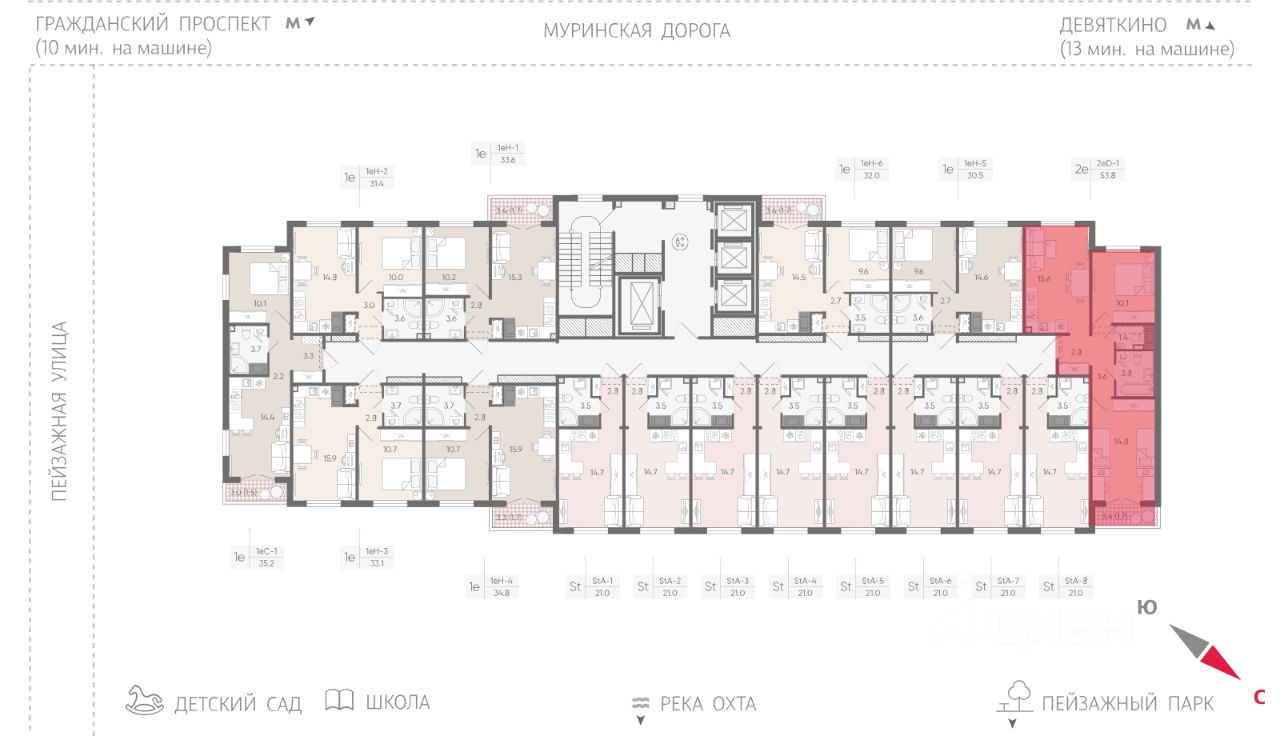 • 20 минут на авто до станций "Гражданский проспект" и "Академическая";