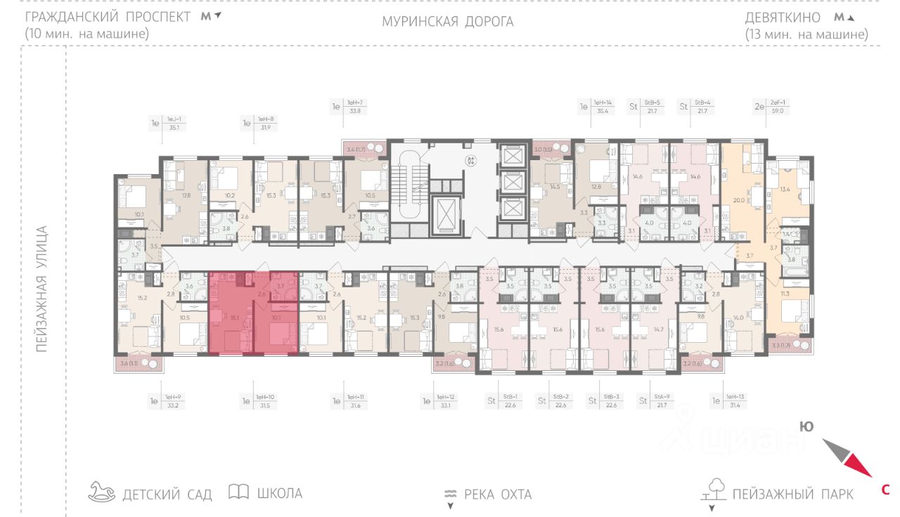 • 20 минут на авто до станций "Гражданский проспект" и "Академическая";