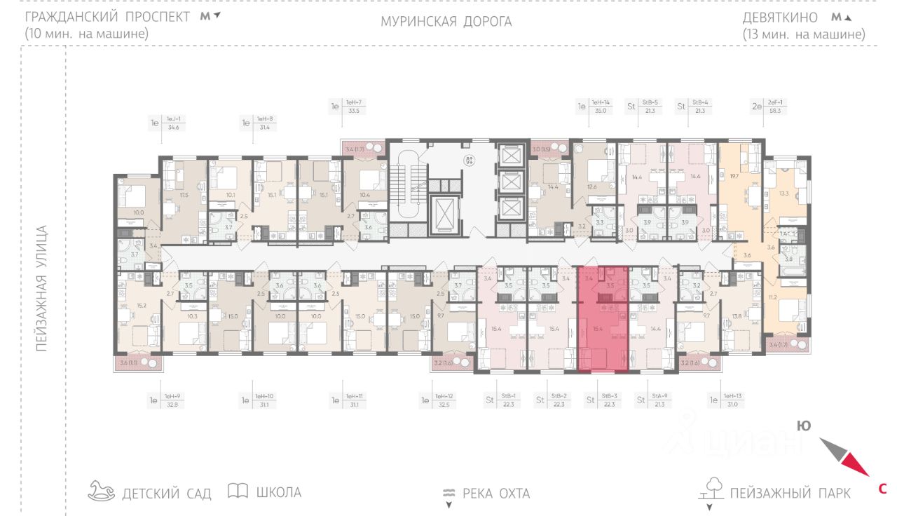 • 20 минут на авто до станций "Гражданский проспект" и "Академическая";