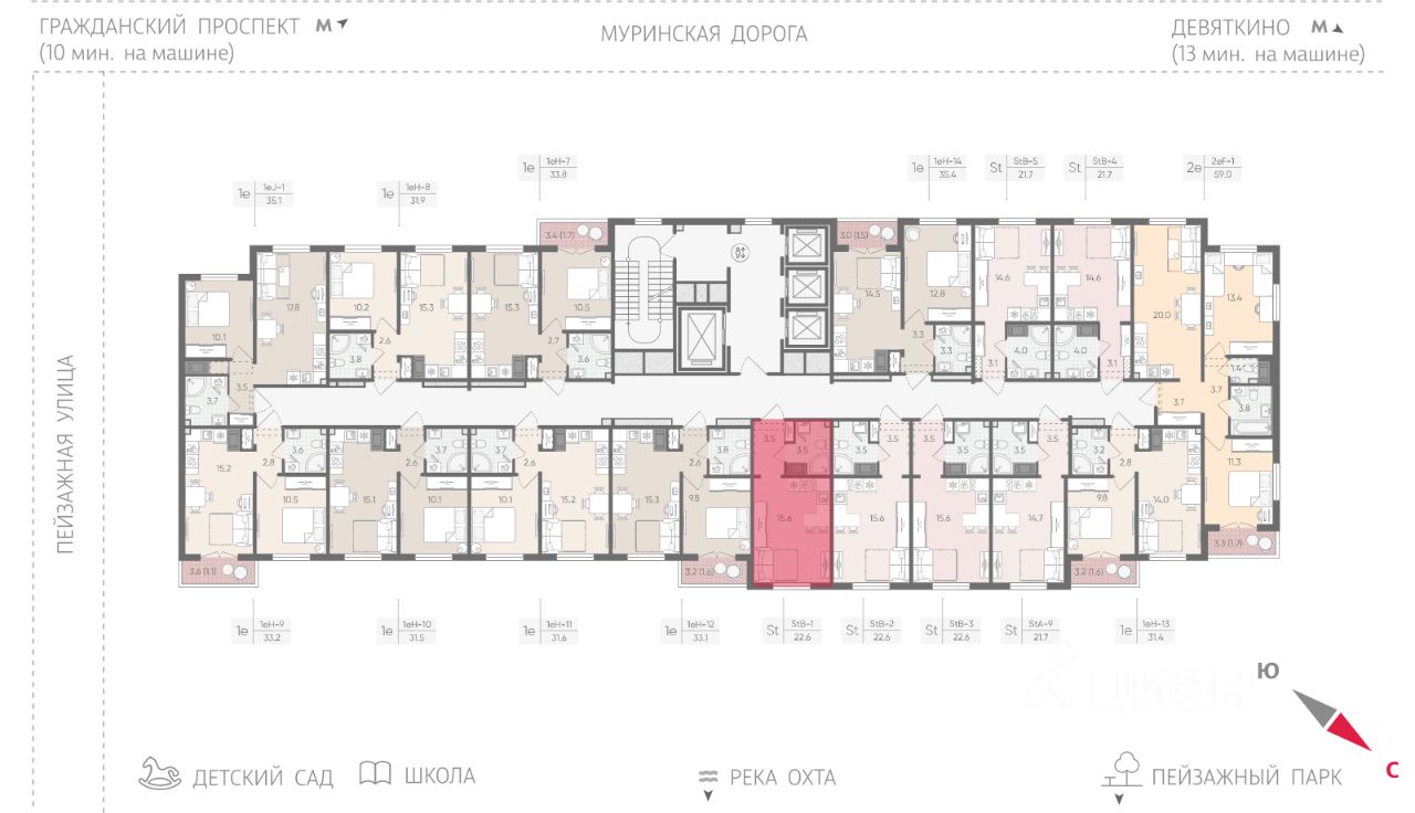 • 20 минут на авто до станций "Гражданский проспект" и "Академическая";