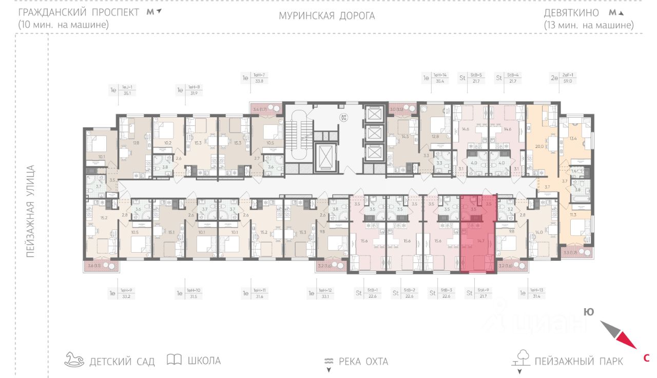 • 20 минут на авто до станций "Гражданский проспект" и "Академическая";