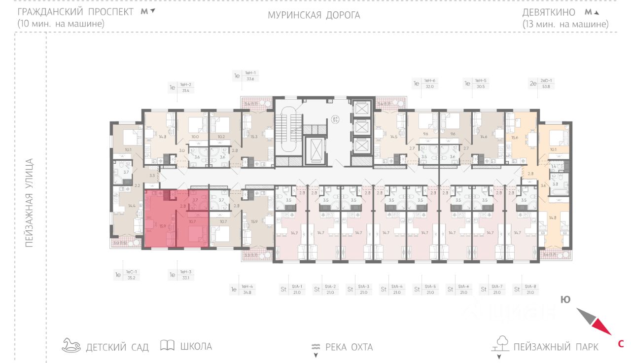 • 20 минут на авто до станций "Гражданский проспект" и "Академическая";