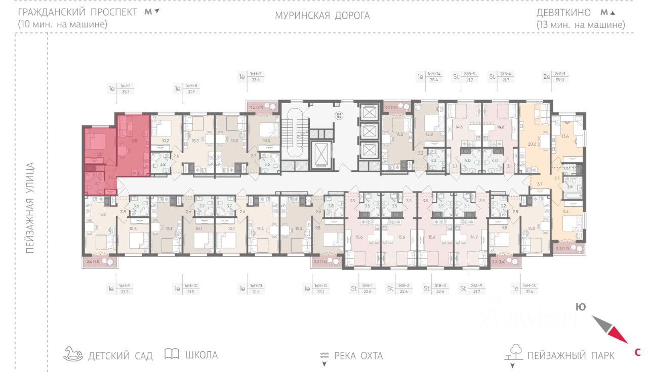 • 20 минут на авто до станций "Гражданский проспект" и "Академическая";