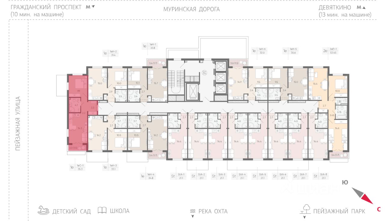 • 20 минут на авто до станций "Гражданский проспект" и "Академическая";