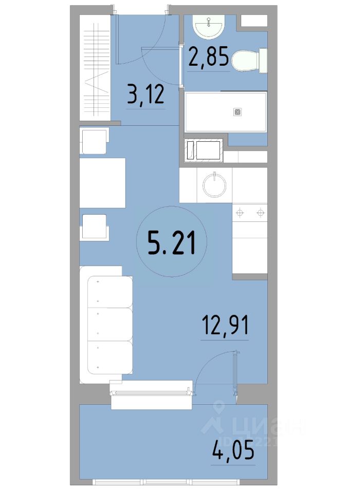 Общая площадь23,06 м²