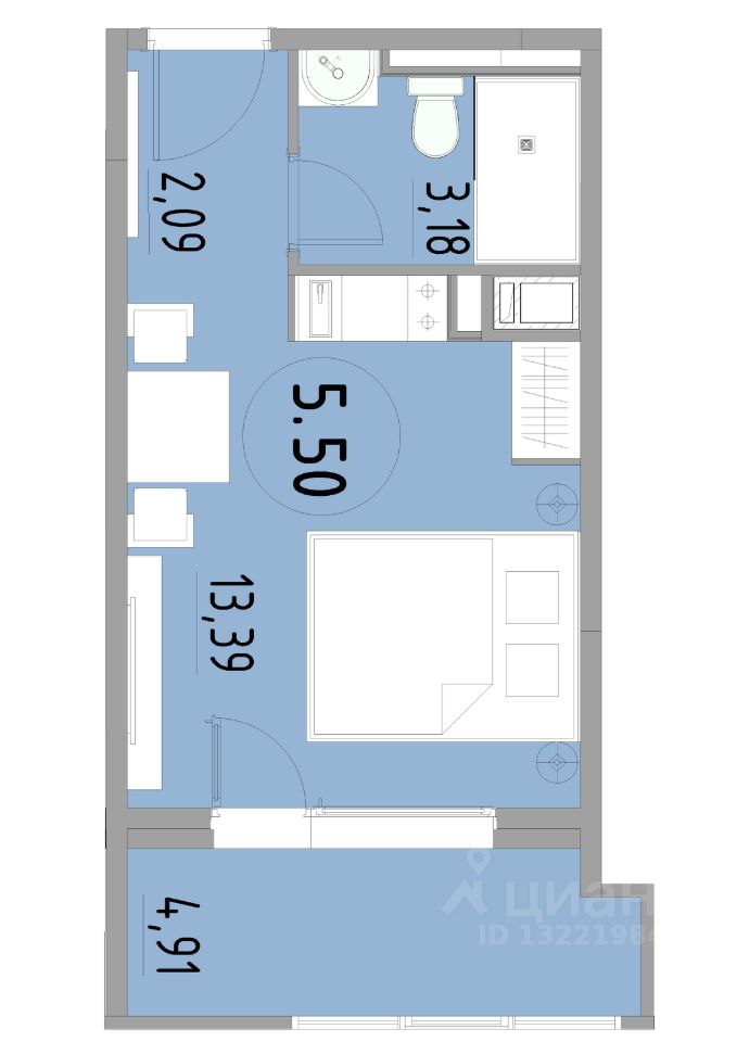 Общая площадь23,57 м²