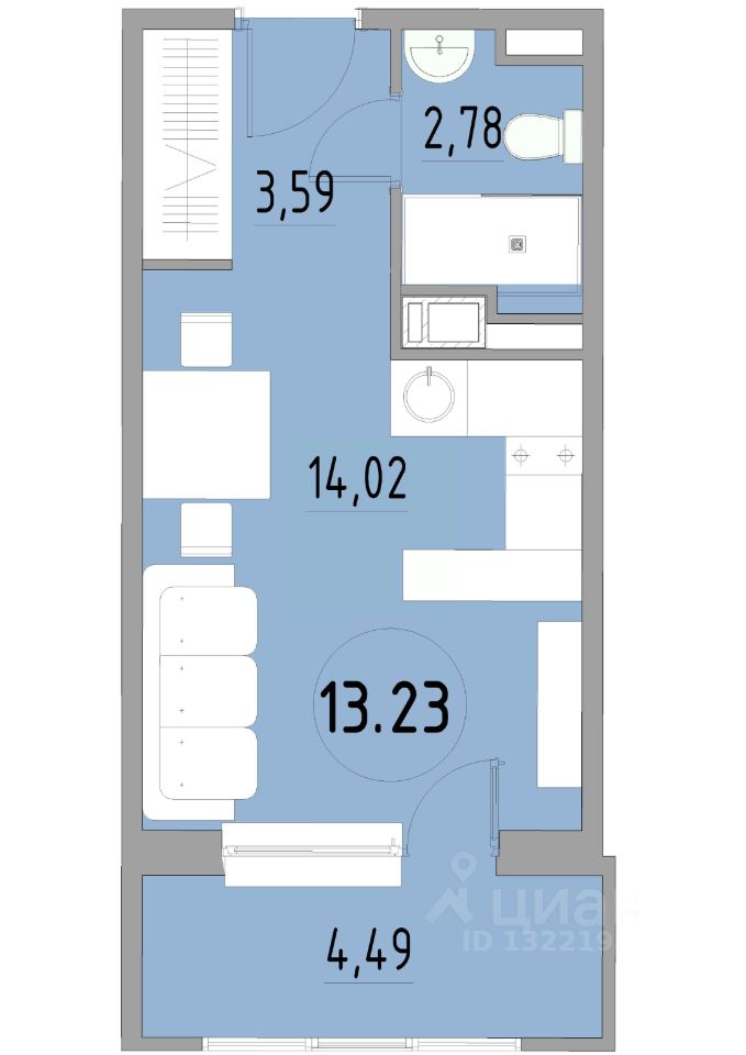 Общая площадь24,88 м²
