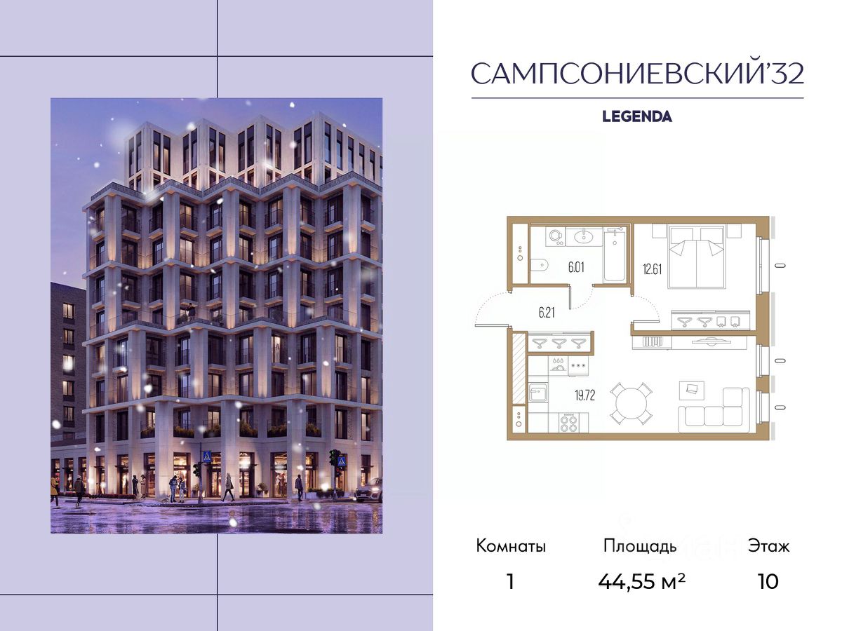 Квартира с одной спальней в комплексе "Сампсониевский 32" от LEGENDA на 10 этаже.