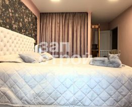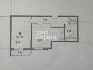 В квартире распложены: Кухня -гостиная 19,55 кв.м. и одна спальня с гардеробом и к вместительной кладовкой 18,68 кв.м. , большая ванна 5 кв.м и туалет. Окна выходят во двор.