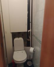 Полы в комнатах- ламинат, а в коридоре, кухне, ванне и туалете- керамическая плитка.