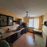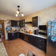 Кухня метражом 11,6 м2, помимо кухонного гарнитура и стола в ней свободно размещается раскладной двуспальный диван.