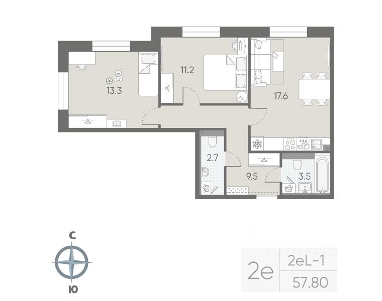 Продаётся 2-комнатная квартира в ЖК "Большая Охта" на 3 этаже. Общая площадь составляет 57.80 кв. м. Квартира с white box отделкой. Жилой комплекс "Большая Охта" располагается по адресу Санкт-Петербург, Красногвардейский.