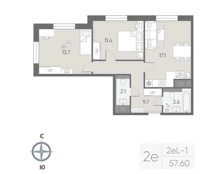Продаётся 2-комнатная квартира в ЖК "Большая Охта" на 10 этаже. Общая площадь составляет 57.60 кв. м. Квартира с white box отделкой. Жилой комплекс "Большая Охта" располагается по адресу Санкт-Петербург, Красногвардейский.