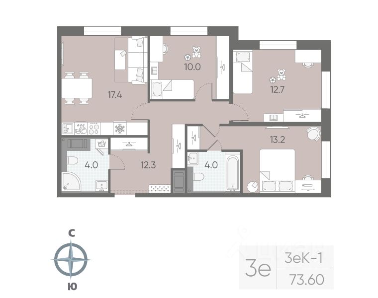 Продаётся 3-комнатная квартира в ЖК "Большая Охта" на 10 этаже. Общая площадь составляет 73.60 кв. м. Квартира с white box отделкой. Жилой комплекс "Большая Охта" располагается по адресу Санкт-Петербург, Красногвардейский.
