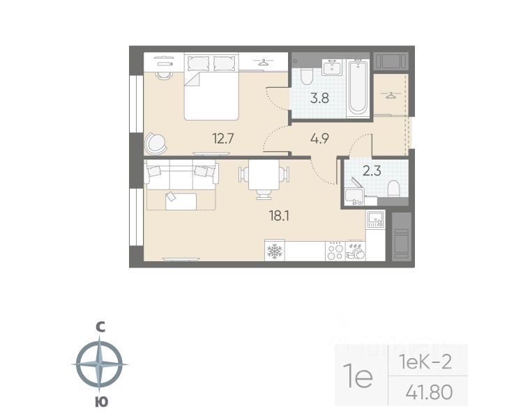 Продаётся 1-комнатная квартира в ЖК "Большая Охта" на 4 этаже. Общая площадь составляет 41.80 кв. м. Квартира с white box отделкой. Жилой комплекс "Большая Охта" располагается по адресу Санкт-Петербург, Красногвардейский.