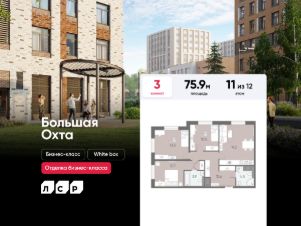 Продаётся 3-комнатная квартира в ЖК "Большая Охта" на 11 этаже. Общая площадь составляет 75.90 кв. м. Квартира с white box отделкой. Жилой комплекс "Большая Охта" располагается по адресу Санкт-Петербург, Красногвардейский.