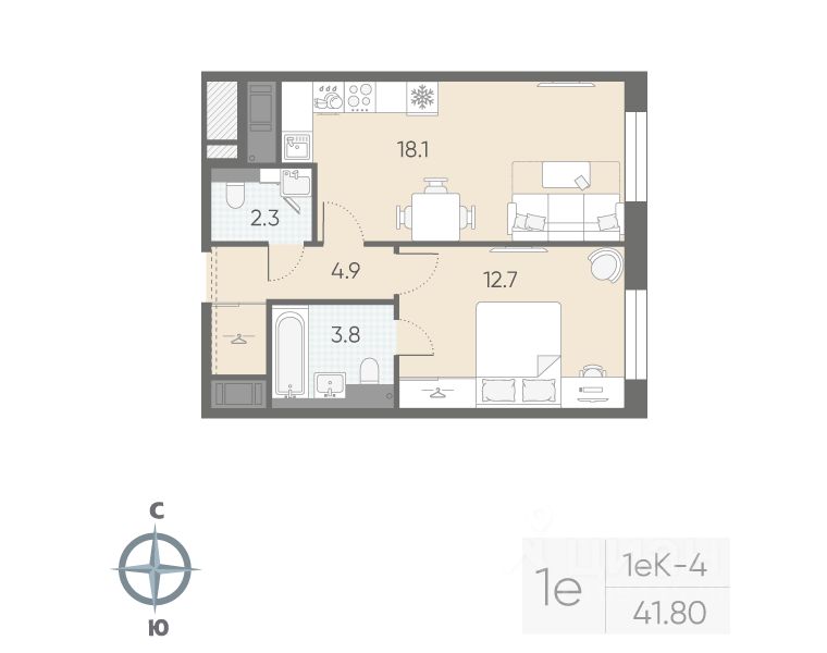 Продаётся 1-комнатная квартира в ЖК "Большая Охта" на 8 этаже. Общая площадь составляет 41.80 кв. м. Квартира с white box отделкой. Жилой комплекс "Большая Охта" располагается по адресу Санкт-Петербург, Красногвардейский.