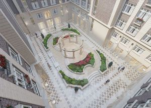 Дом, в котором расположена квартира, — воплощение классической элегантности. Внутренний двор-атриум, укрытый стеклянной крышей на уровне шестого этажа, и зимний сад с ротондой создают атмосферу спокойствия в сердце города.