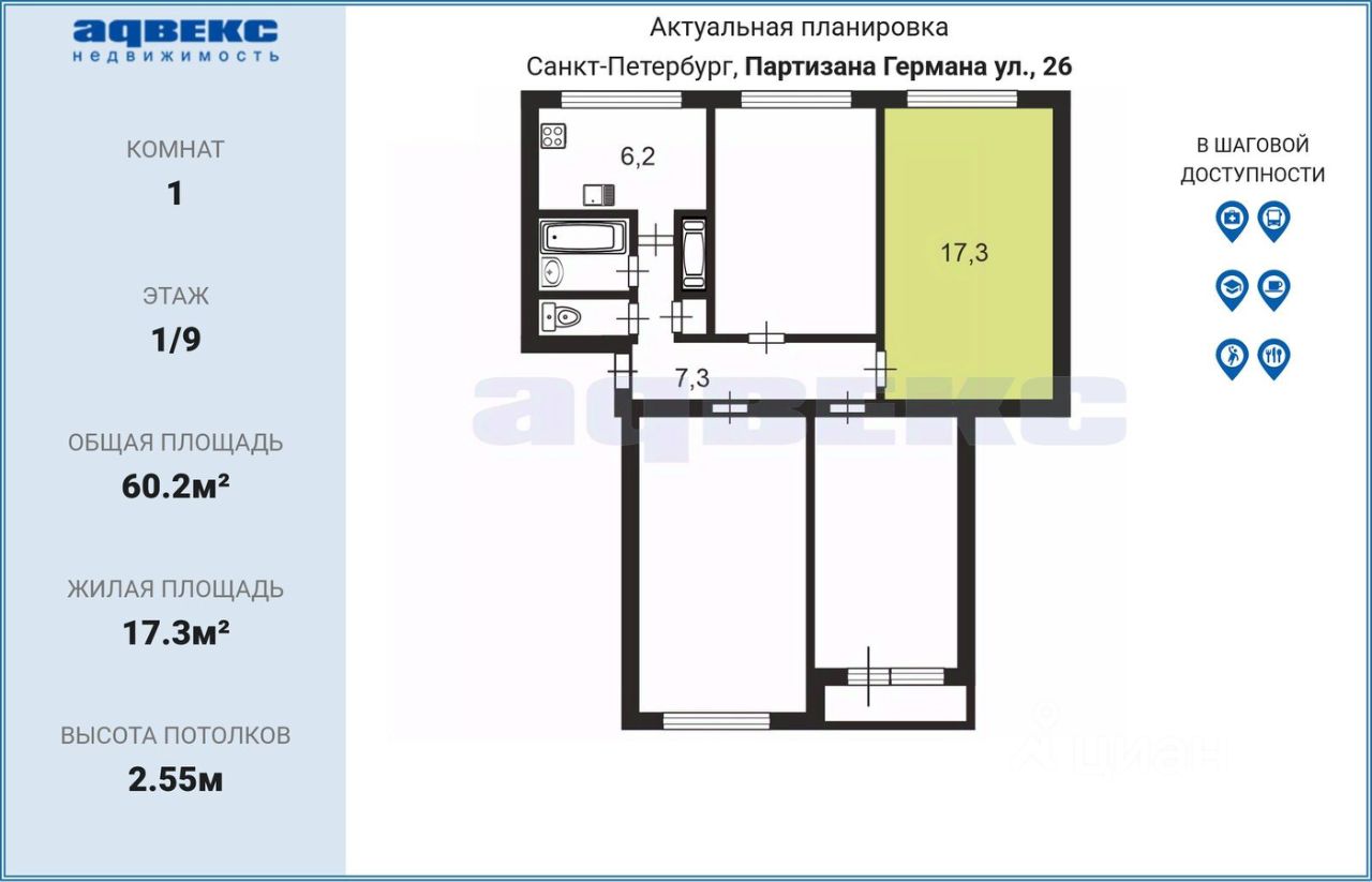 17,3 м²