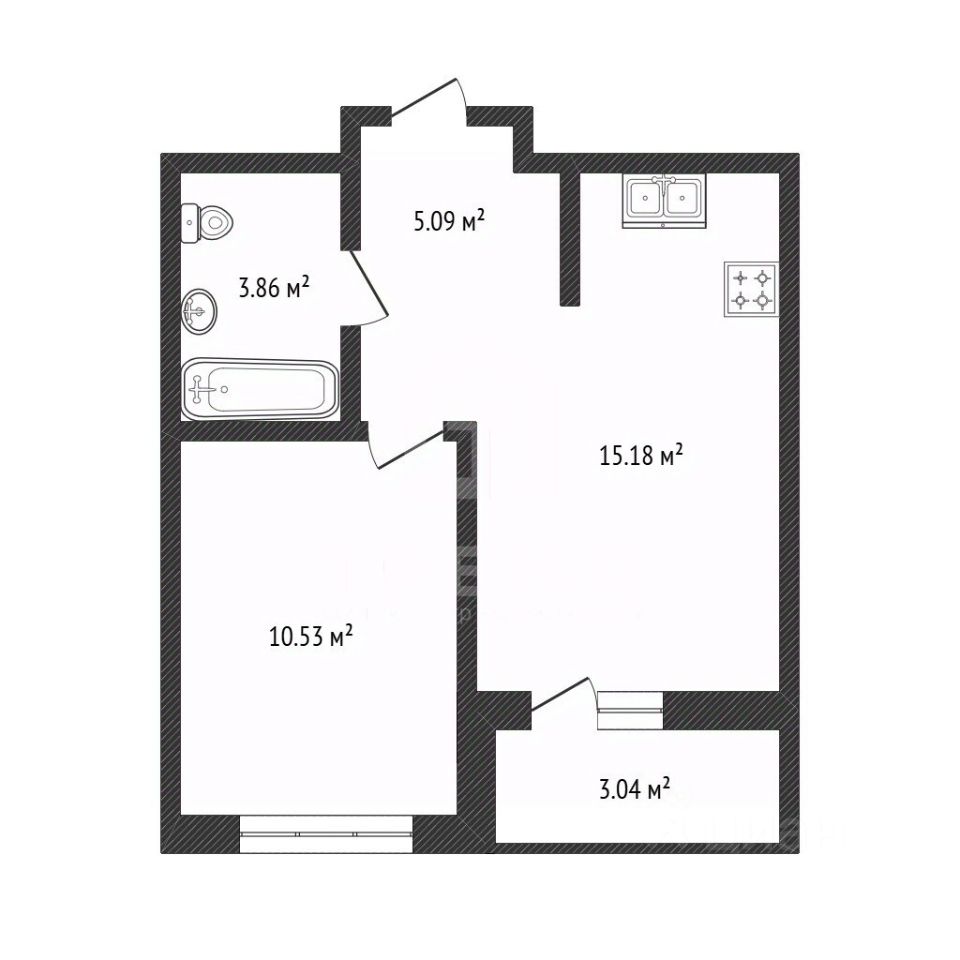 Планировка: общая площадь квартиры — 37,71 кв. м, включает жилую площадь 10,53 кв. м и просторную кухню 15,18 кв. м. Высота потолков 2,75 м создаёт ощущение пространства.