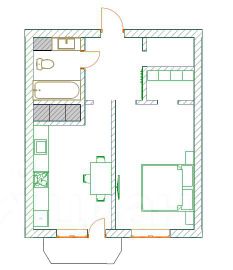 Общая площадь 41,4 кв.м., комната 17 кв.м., кухня 13,3 кв.м., с/у 4,3 кв.м, лоджия 3,2 кв.м.