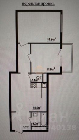 В 1- комнатной квартире сделана перепланировка в 2-х комнатную квартиру с дизайнерским ремонтом. Площадь квартиры увеличена за счет нежилых помещений. Общая площaдь квартиры 46.5+8 кв.м. Площадь кoмнат - 16,0 м.кв. и 11,0 м.кв.