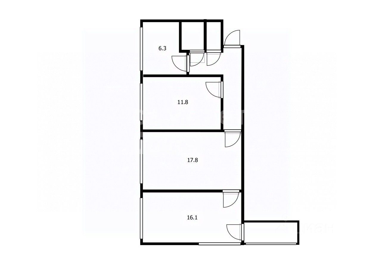 Комнаты: 11,8 кв.м/17,8кв.м/16,1 кв.м с выходом на балкон