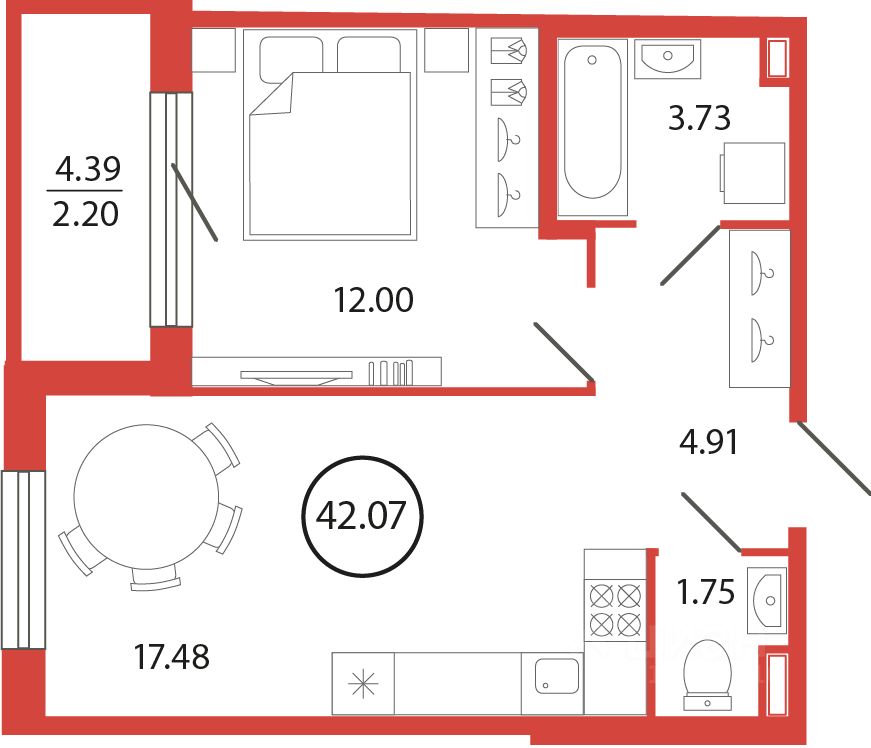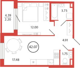 Продаётся e2 комнатная квартира (евро) в жилищном комплексе "Энфилд" (корпус Дом 18 секция 1). Общая площадь 42,07 кв. м, площадь комнат 12 кв.м. Санузел. Квартира расположена на 9 этаже 12 этажного дома. Срок сдачи корпуса IV квартал 2027 года.