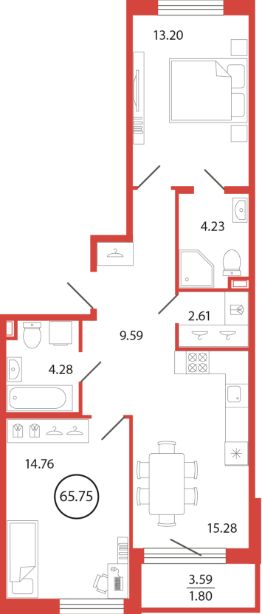 Продаётся e3 комнатная квартира (евро) в жилищном комплексе "Энфилд" (корпус Дом 18 секция 5). Общая площадь 65,75 кв. м, площадь комнат 13,2 кв.м, 14,76 кв.м. 2 санузла. Квартира расположена на 2 этаже 12 этажного дома. Срок сдачи корпуса IV квартал 2027 года.
