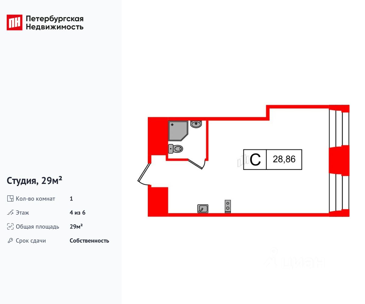 Удобная, классическая, функциональная европланировка. Общая площадь апартаментов - 29 м², высота потолка 3 м.