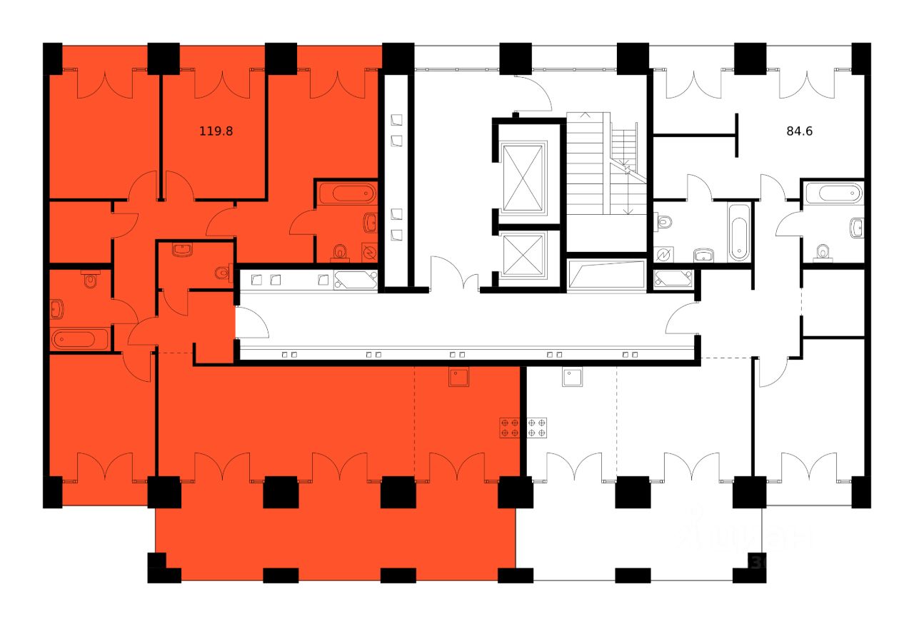 Продаётся 4-комн. квартира площадью 119,8 кв.м на 9 этаже 9 этажного дома (Корпус 2.2, Секция 11) проекта ПИК Лермонтовский 54. Светлый просторный подъезд на уровне земли, функциональная планировка, большие окна, без отделки.