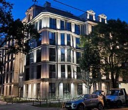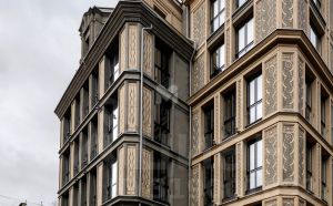Изысканный декор фасада, элегантные эркеры, изящные решетки балконов, кованые перила, двор без машин, который предполагает закрытую дворовую территорию, на которой ведется постоянное видеонаблюдение. На придомовой территории высажены высокоствольные деревья и кустарники, выполнен ландшафтный дизайн в европейском стиле, а в центре двора спроектирована площадь с фонтаном.