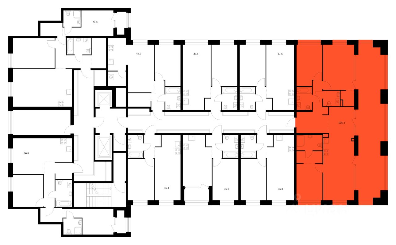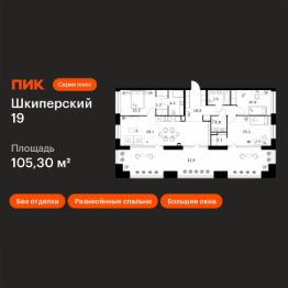 Продаётся 3-комн. квартира площадью 105,3 кв.м на 8 этаже 8 этажного дома (Корпус 2, Секция 3) проекта ПИК Шкиперский 19. Светлый просторный подъезд на уровне земли, функциональная планировка, большие окна, без отделки.