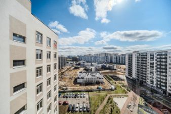 Окна выходят на две стороны: благоустроенный двор и парк. Благодаря высокому этажу открывается живописный вид. Высота потолков - 3 метра, благодаря этому в квартире много света.