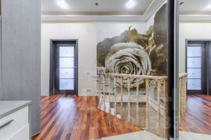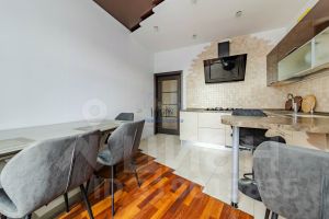 - На первом этаже квартиры расположены уютная гостиная площадью 20 м² и спальня в 16 м², а также совместный санузел.
