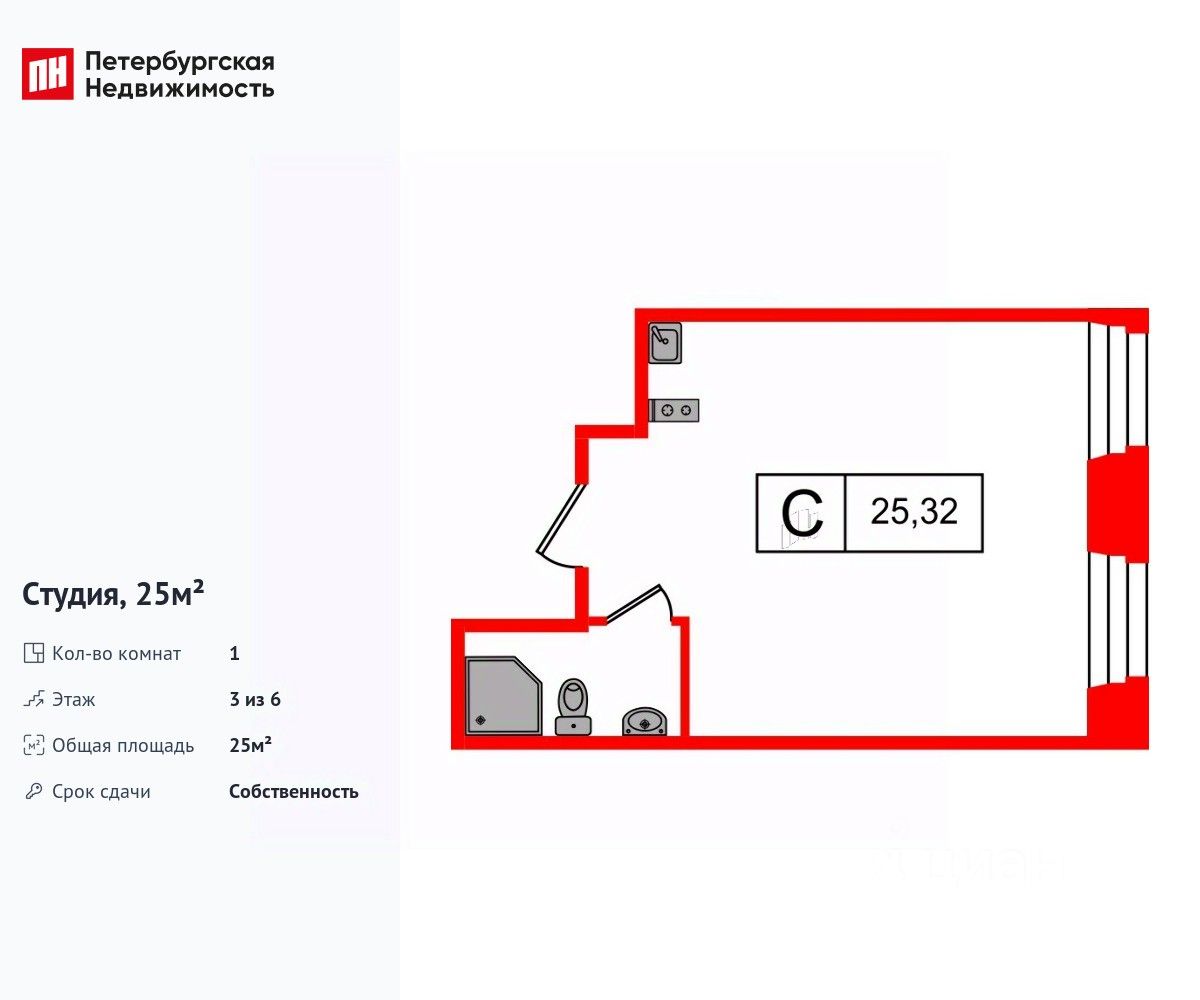 Удобная, классическая, функциональная европланировка. Общая площадь апартаментов - 25 м², высота потолка 3 м.